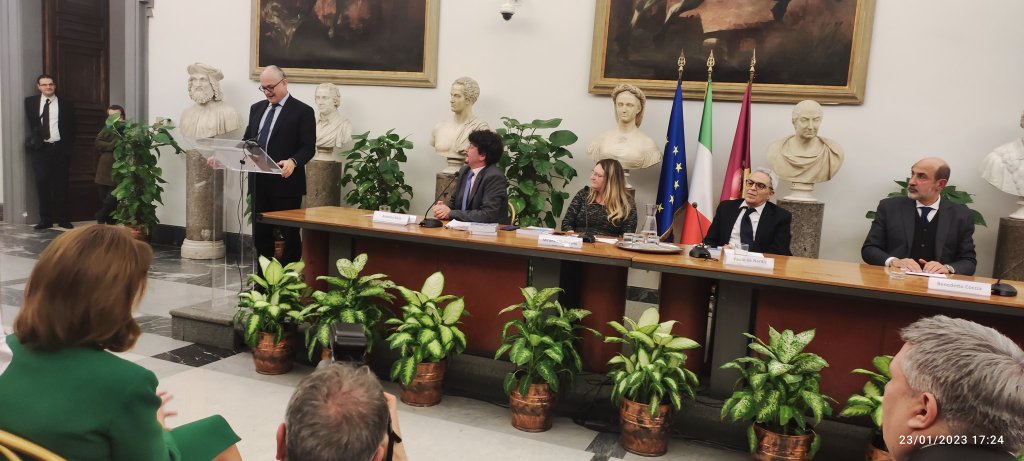 Nella foto: presentazione al Campidoglio, alla presenza del Sindaco di Roma Roberto Gualtieri, del volume “Radici a metà – 30 anni di immigrazione romena in Italia” (Roma, gennaio 2023)